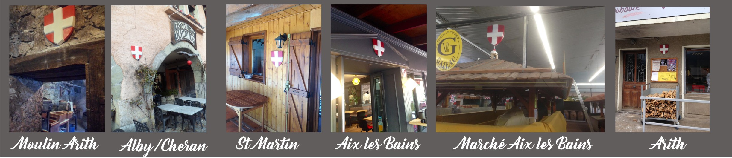 Quoi qu' il en soit Le comte Amédée V l'adopte au XIVe siècle et son usage devient définitif.on reprendra le blason des contes de gueules à la croix d'argent, dit aussi croix de Savoie.